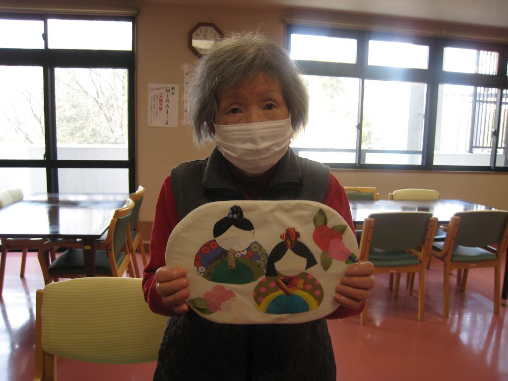 学園前西ケアハウス 2026 2/14 お知らせ アイロンプリントで個性豊かなお雛様を作っていただきました。それそれの表情がとってもかわいらしいです お知らせ 学園前西グループホーム 面会予約受付可能日(2/1~2/28)