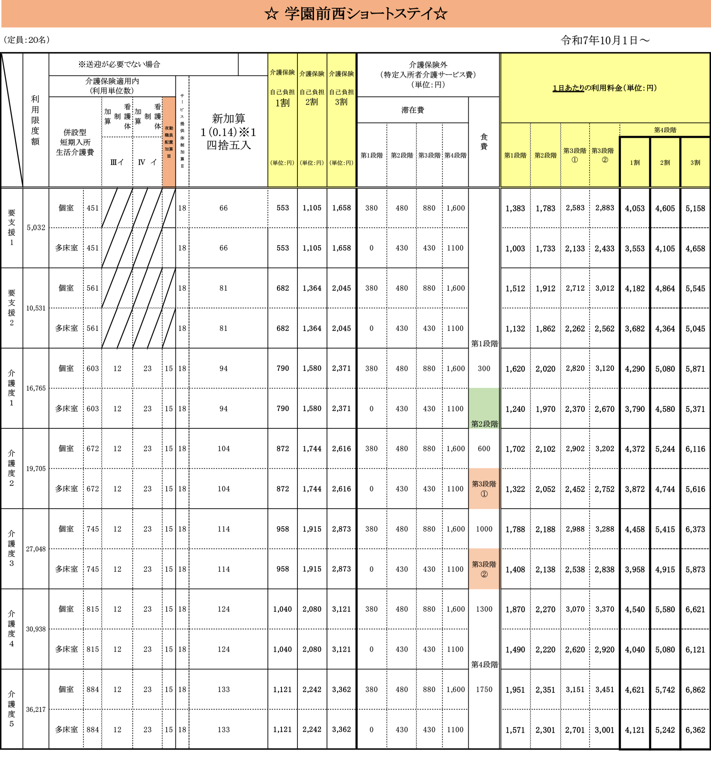 | ・上記のほかに、施設体制加算等が必要なことがあります。 【日額】 |